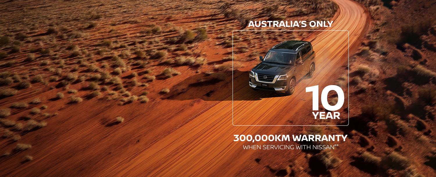 °° Whichever occurs first, when servicing at authorised Nissan dealers. Where vehicle is not serviced through Nissan or ceases to be serviced at Nissan, additional years will not be added so 10 year/300,000km warranty (whichever occurs first) may not apply. Warranty protection will remain 5 year/unlimited km warranty, plus any additional service activated years added under the Plan. Conditions apply. Full terms at Warranty