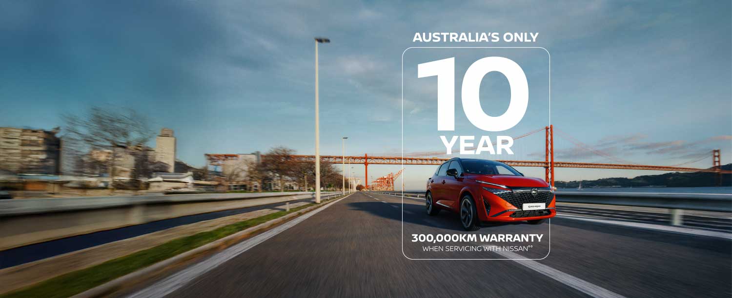 °° Whichever occurs first, when servicing at authorised Nissan dealers. Where vehicle is not serviced through Nissan or ceases to be serviced at Nissan, additional years will not be added so 10 year/300,000km warranty (whichever occurs first) may not apply. Warranty protection will remain 5 year/unlimited km warranty, plus any additional service activated years added under the Plan. Conditions apply. Full terms at Warranty